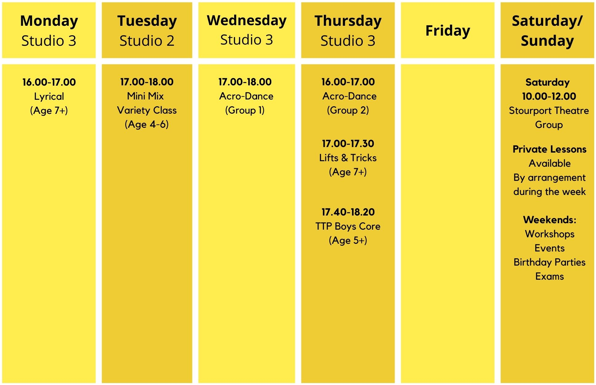 Explore our Kidderminster timetable and find the right performing arts class for every age, from tiny tots to teens and adults.